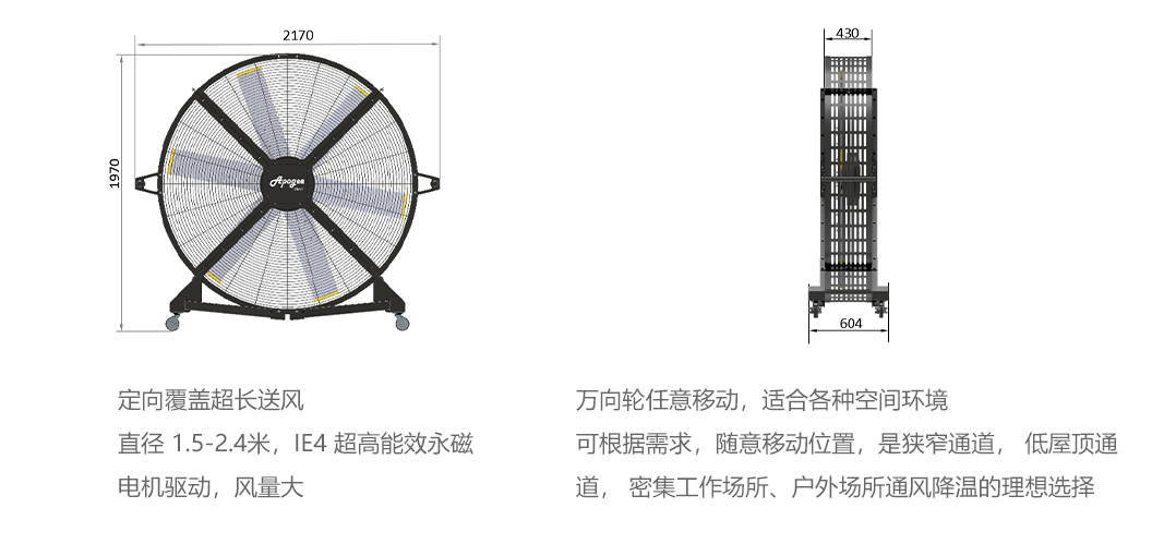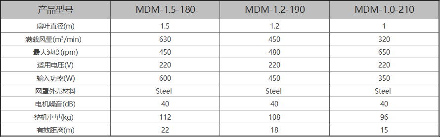 MDM采用永磁無刷電機直接驅(qū)動, 電機高效節(jié)能, 超高可靠性,扇葉采用高強度鋁鎂合金,流線結(jié)構(gòu)扇葉大化風量及風扇覆蓋距離, 相比低成本鈑金扇葉, 流線結(jié)構(gòu)扇葉有更好出風效率,氣流平穩(wěn)性,靜音效果。 產(chǎn)品適合室內(nèi),室外使用, 方便實用