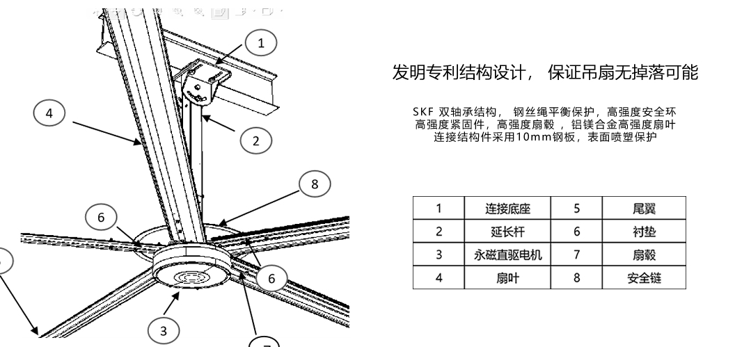 奧寶杰永磁直驅(qū)大風(fēng)扇擁有先進(jìn)的電機(jī)直接驅(qū)動(dòng)技術(shù),無極調(diào)速(可高速可低速)、正轉(zhuǎn)與反轉(zhuǎn)的技術(shù)與能力,并獲得了獲得整機(jī)(外觀、電機(jī)、安全結(jié)構(gòu))專利