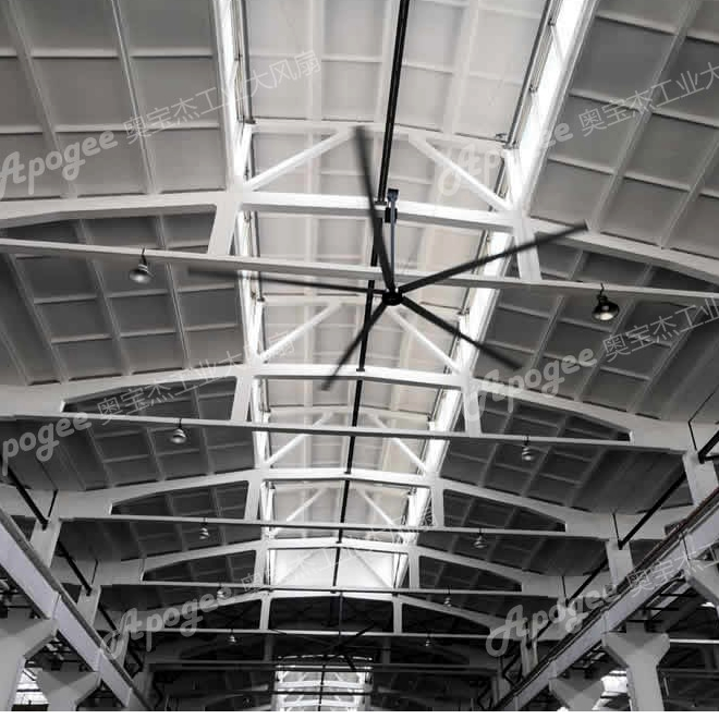混凝土廠房里工業(yè)吊扇是解決空氣流通,通風(fēng)降溫的既高效又性價(jià)比優(yōu)的方法。